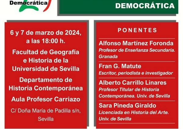 La Asociación Memoria, Libertad y Cultura Democrática, con la colaboración del Ministerio de Política Territorial y Memoria Democrática, ha organizado unas jornadas tituladas «Las movilizaciones sociales contra el franquismo en Andalucía durante los años sesenta». Las sesiones se desarrollan los días 6 y 7 de marzo de 2024 en elSeguir leyendo…