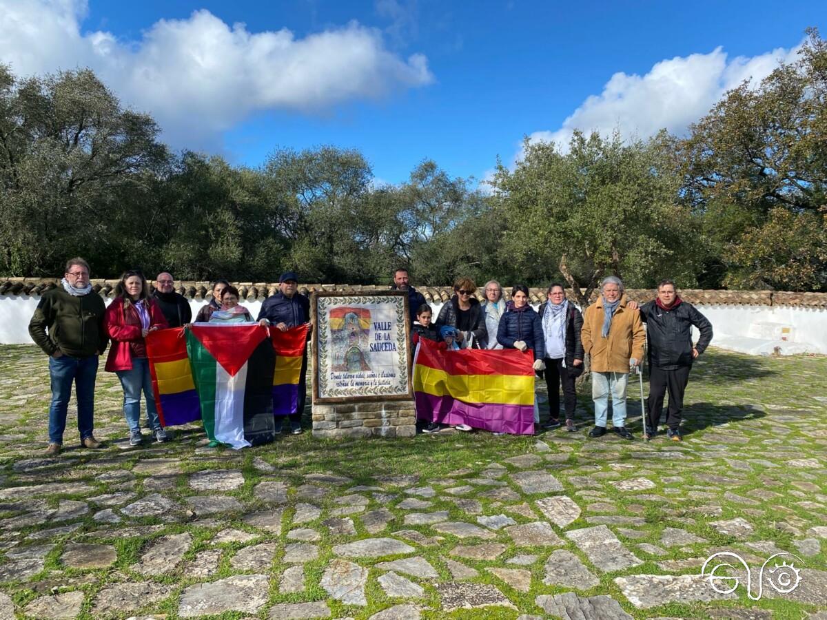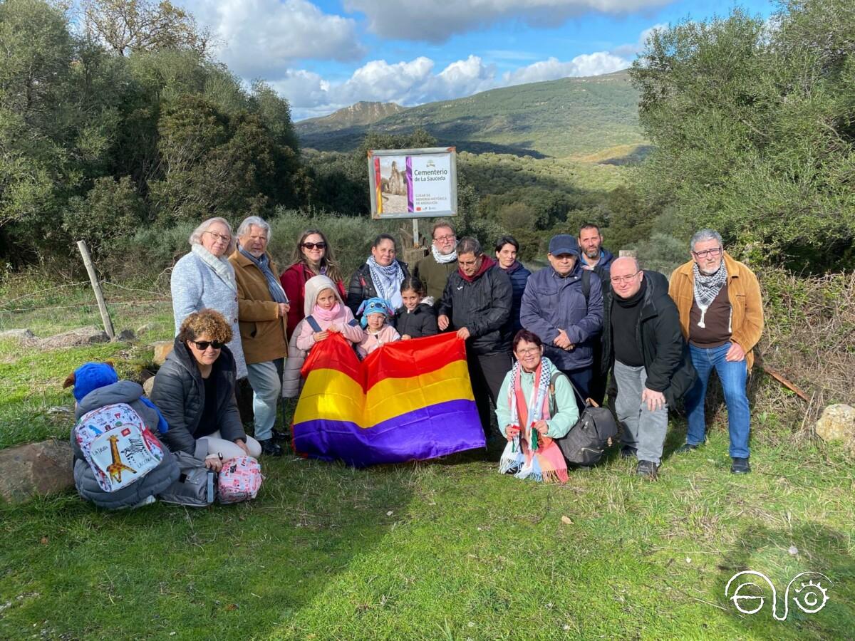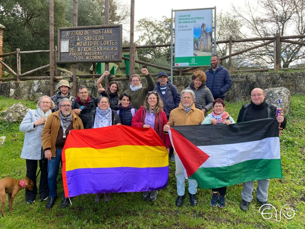 Al término de la visita, y guiados por Andrés Rebolledo y Ana Jiménez, se trasladaron al paraje serrano origen y motor de esta entidad memorialista: La Sauceda. Allí participaron en la reposición de los paneles que informan que tanto el despoblado de la Sauceda como su cementerio son lugares de memoria histórica y democrática de Andalucía. Estos paneles, financiados por el Ayuntamiento de Jimena de la Frontera de acuerdo al convenio suscrito con la Casa de la Memoria, sustituyen a los anteriores, vandalizados y arrancados por los devotos del odio y la intransigencia.