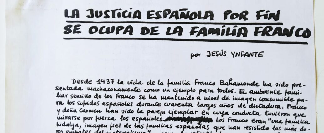 Un artículo escrito por Jesús Ynfante en 1977 sobre la primera actuación legal contra la familia Franco